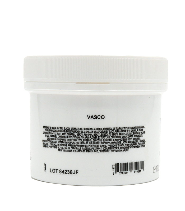 Vasco facilitates the vascularisation of capillaries by strengthing and increasing the elasticity of the capillary walls. It is decongesting and suitable for blotchiness or couperose.